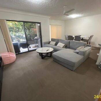 Spacious Ground Floor Unit – Short Walk to the Beach. Lease Break. Ground floor spacious 2 bedroom unit with dual balconies, water views off the balcony from the air-conditioned open plan lounge/dining.